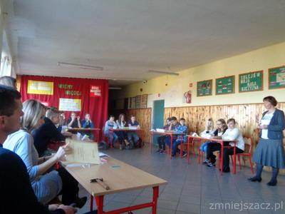 Konkurs z wiedzy ogólnej pn. "Wiemy więcej" i turniej piłki siatkowej były okazją do spotkania z uczniami okolicznych gimnazjów: w Sulejowie, Przygłowie, Mniszkowie, Dąbrowie nad Czarną i Ręcznie.
