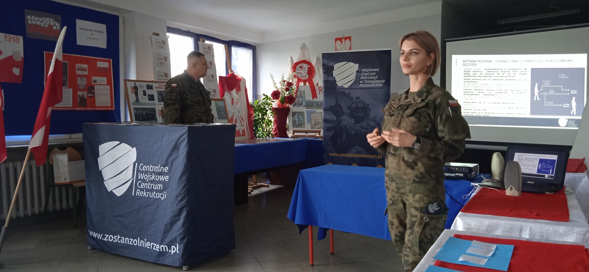 Uczestnikom uroczystego spotkania zostały przybliżone aspekty służby wojskowej, tematyka związana ze szkolnictwem wojskowym oraz oferty wojska dotyczące możliwości podjęcia pracy zawodowej w Wojsku Polskim. Młodzież zapoznana została z możliwościami kariery, z profitami jakie z tej służby wynikają dla kandydatów.