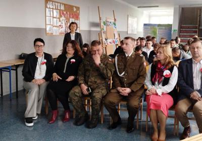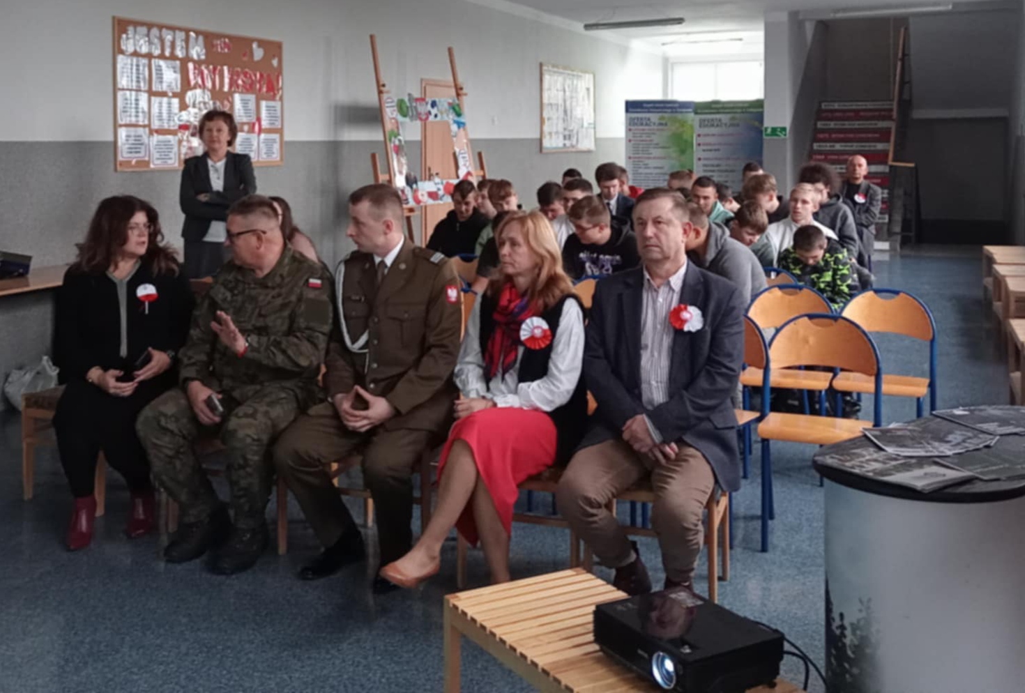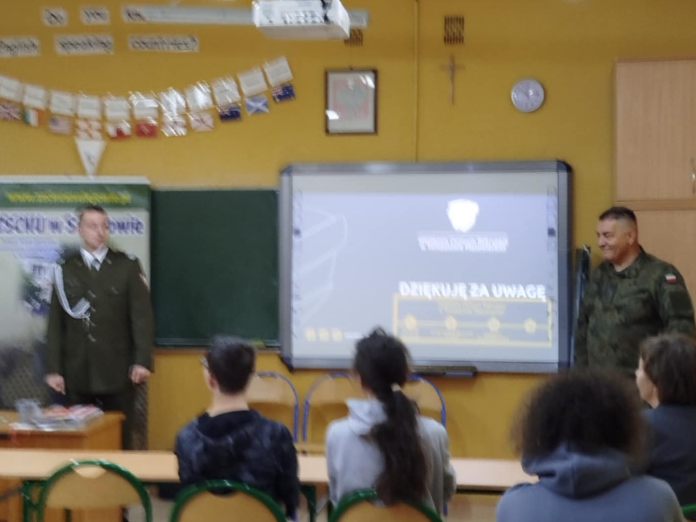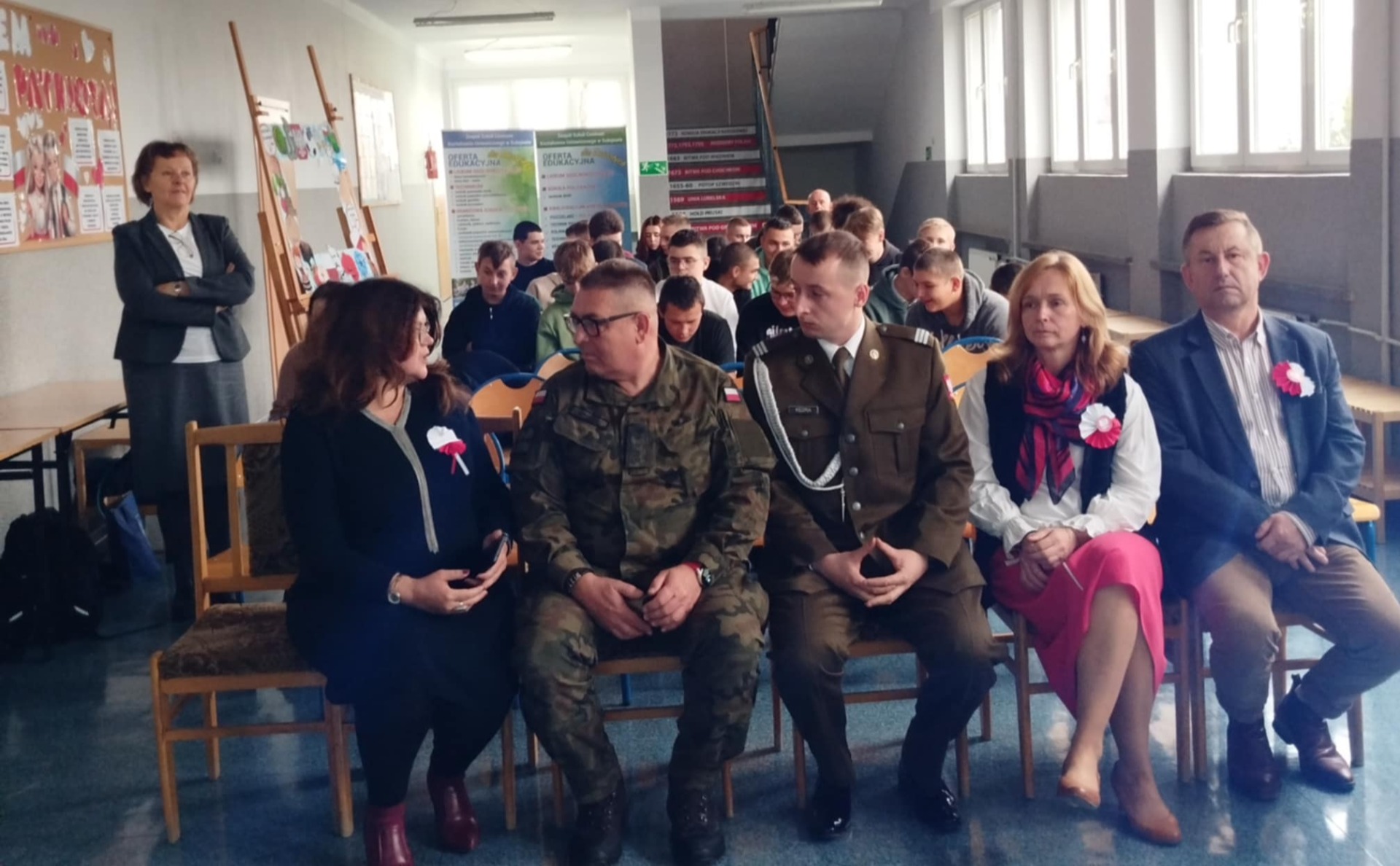 odbyło się uroczyste spotkanie z przedstawicielami Wojskowego Centrum Rekrutacji w Tomaszowie Mazowieckim. Na akademii z okazji Odzyskania Niepodległości gościliśmy żołnierzy z zawodowej służby wojskowej: starszego chorążego sztabowego rezerwy Pana Damiana Komańskiego i starszego kaprala Pana Mateusza Kędrę z Wydzialu Rekrutacji i Promocji w Sekcji Promocji i Współpracy WCR w Tomaszowie Mazowieckim. Uczestnicy spotkania z żołnierzami mieli możliwość dowiedzieć się o zadaniach zawodowych i rekrutacji oraz aspektach pracy w służbie wojskowej/I.P./.