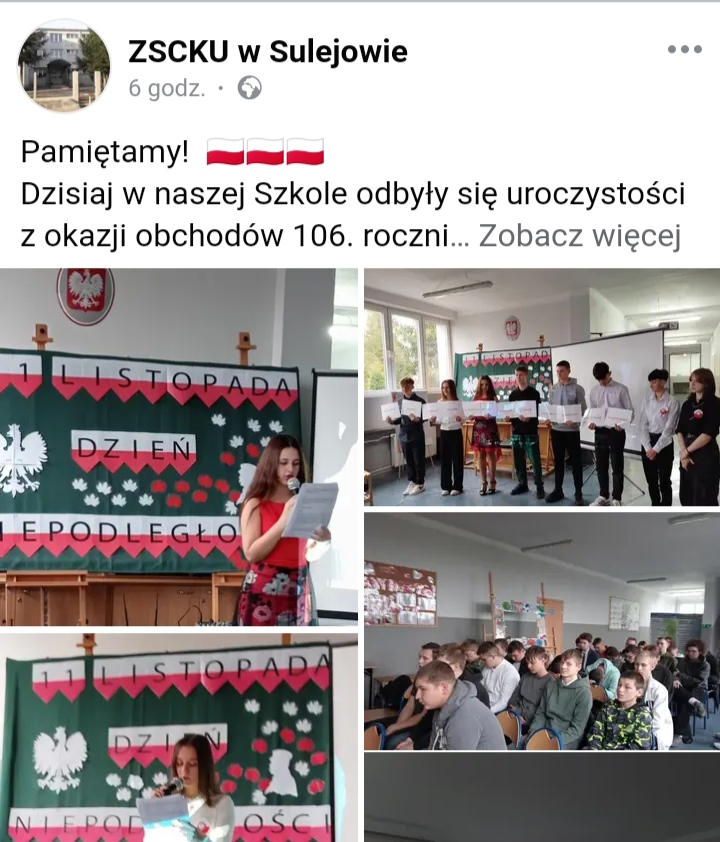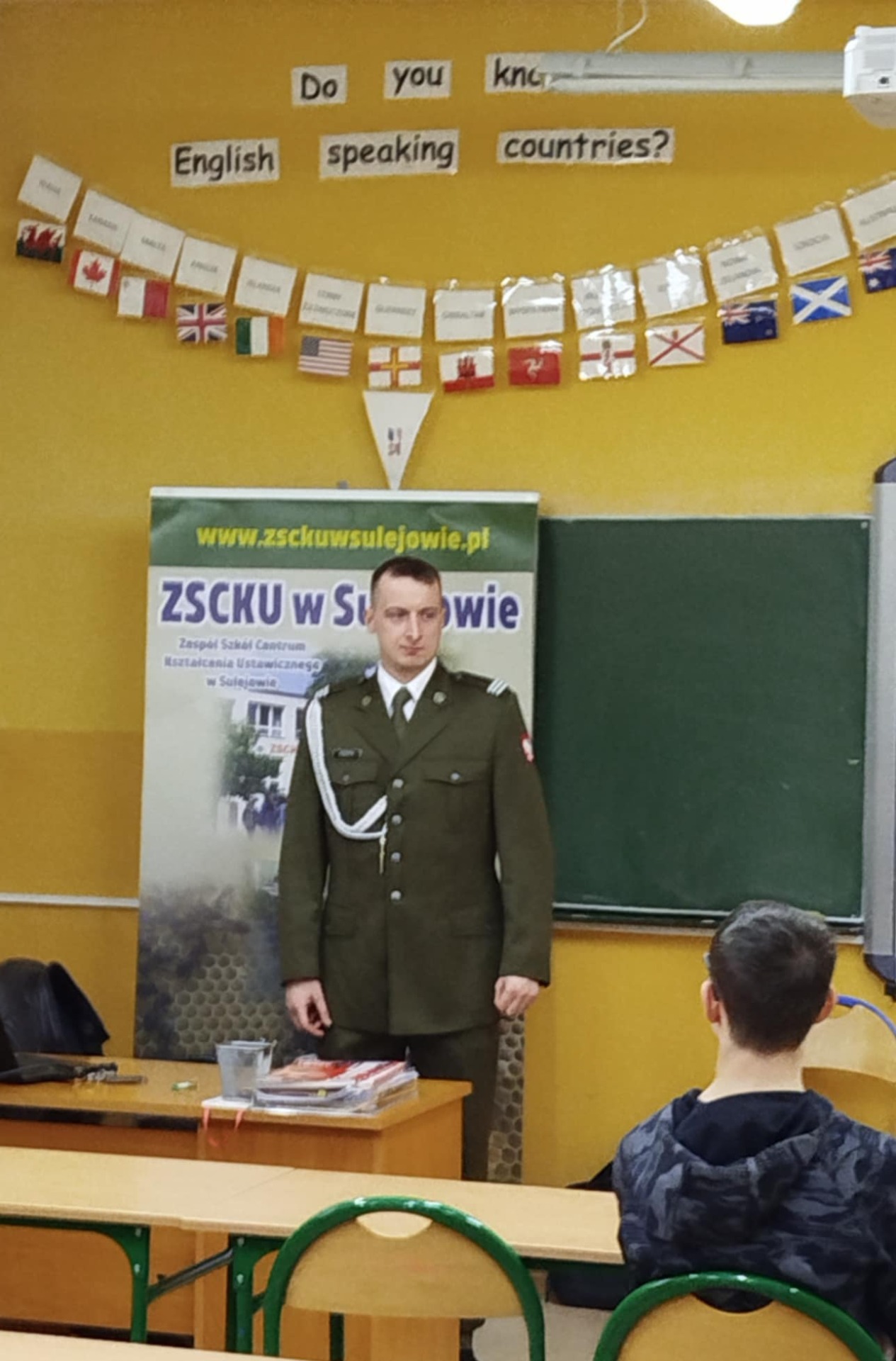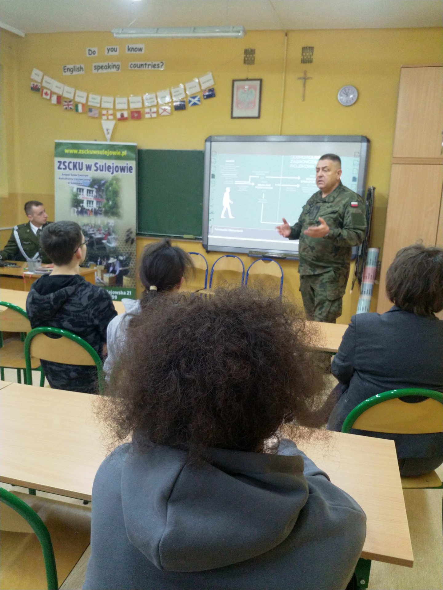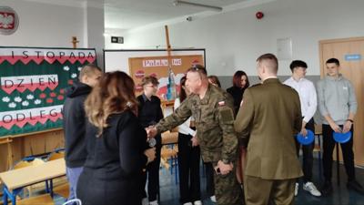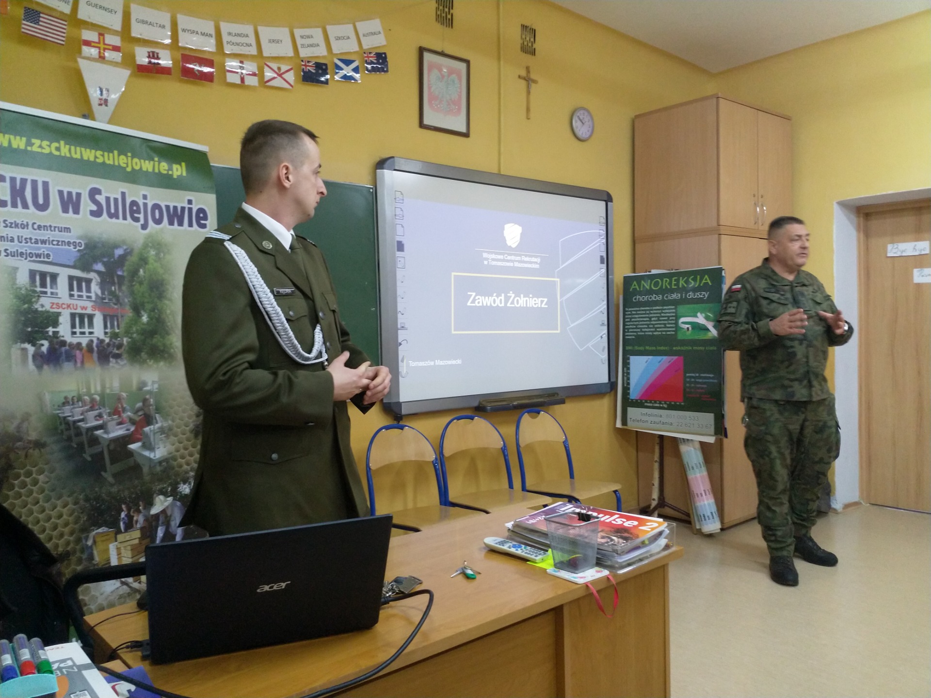 odbyło się uroczyste spotkanie z przedstawicielami Wojskowego Centrum Rekrutacji w Tomaszowie Mazowieckim. Na akademii z okazji Odzyskania Niepodległości gościliśmy żołnierzy z zawodowej służby wojskowej: starszego chorążego sztabowego rezerwy Pana Damiana Komańskiego i starszego kaprala Pana Mateusza Kędrę z Wydzialu Rekrutacji i Promocji w Sekcji Promocji i Współpracy WCR w Tomaszowie Mazowieckim. Uczestnicy spotkania z żołnierzami mieli możliwość dowiedzieć się o zadaniach zawodowych i rekrutacji oraz aspektach pracy w służbie wojskowej/I.P./.