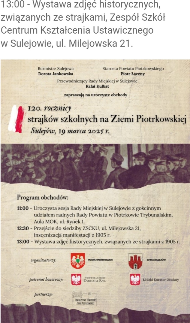 120. rocznica strajków szkolonych na ziemi piotrkowskiej - W OBRONIE JĘZYKA POLSKIEGO.